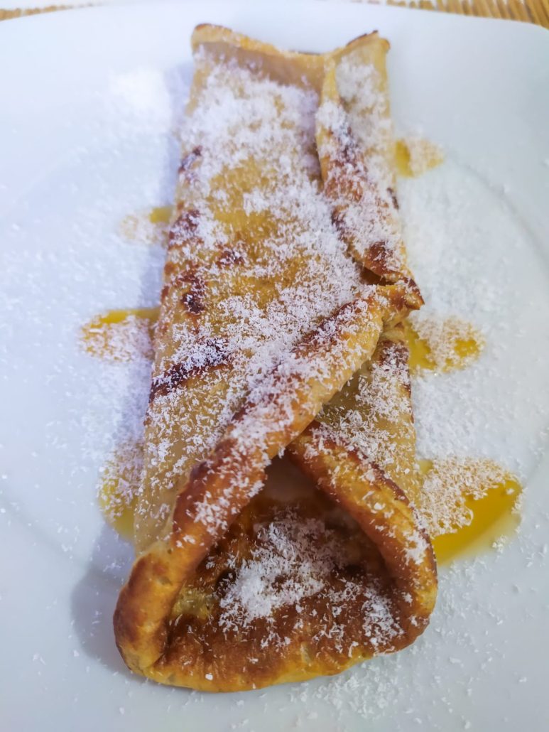 Questa versione l’ho farcita con crema proteica al cocco, sciroppo d’agave e una spolverata di cocco rapè.