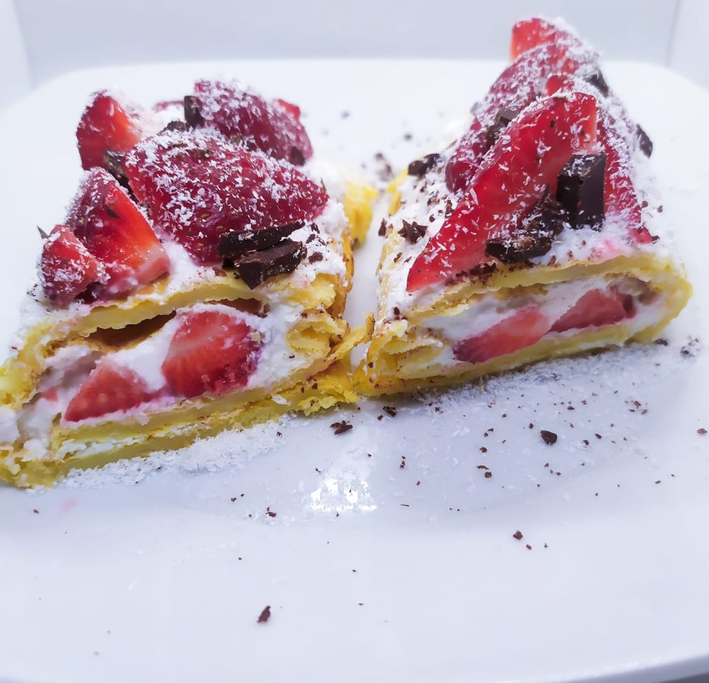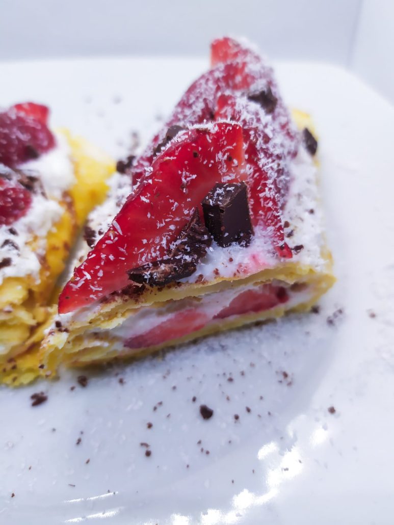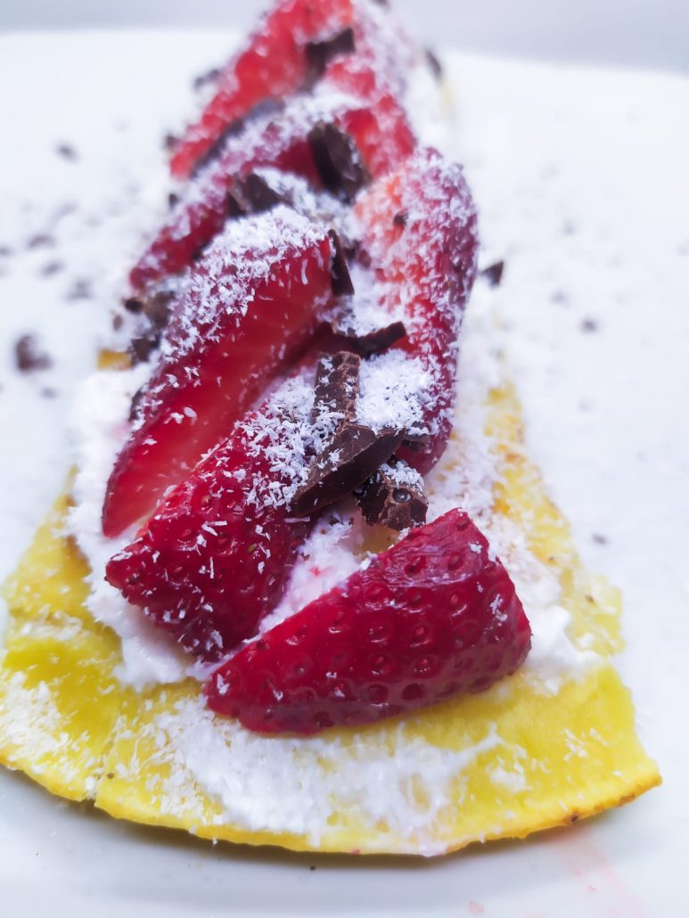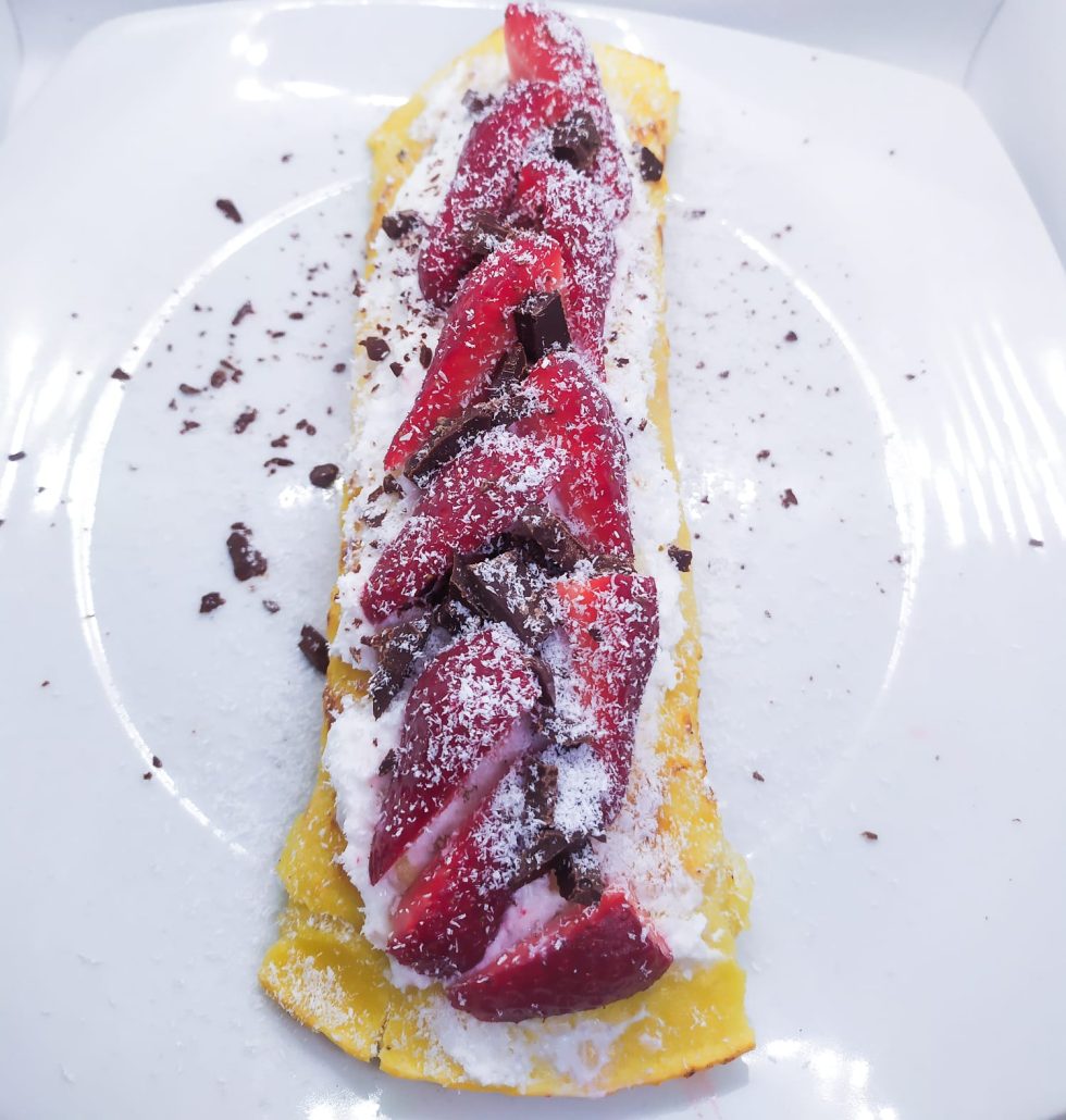 Crepe con farina di ceci con fragole e cioccolato